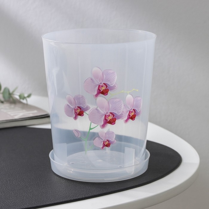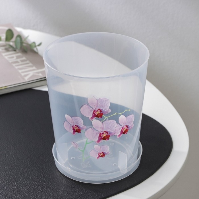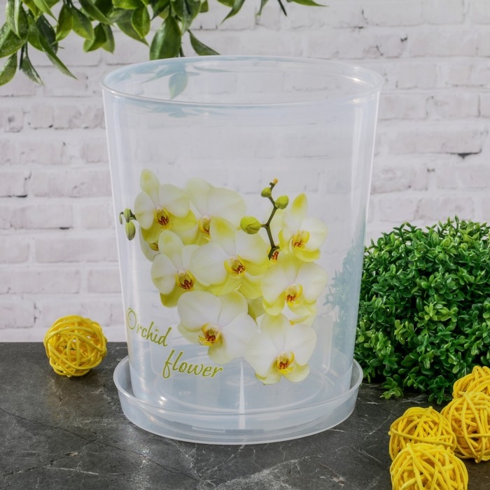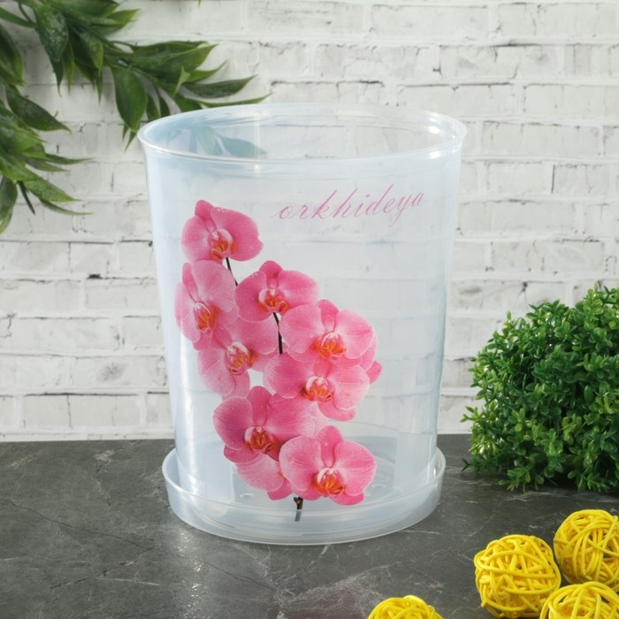 Горшок для орхидей с поддоном, 1,2 л, пластиковый, цвет МИКС