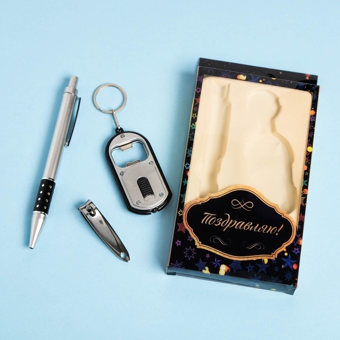 Набор подарочный 3в1 (ручка, кусачки, брелок-открывалка с фонариком)