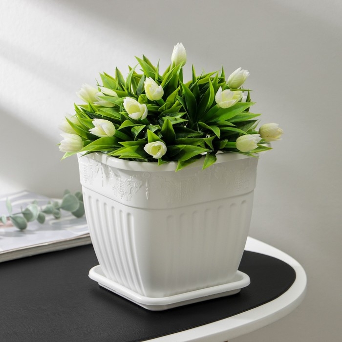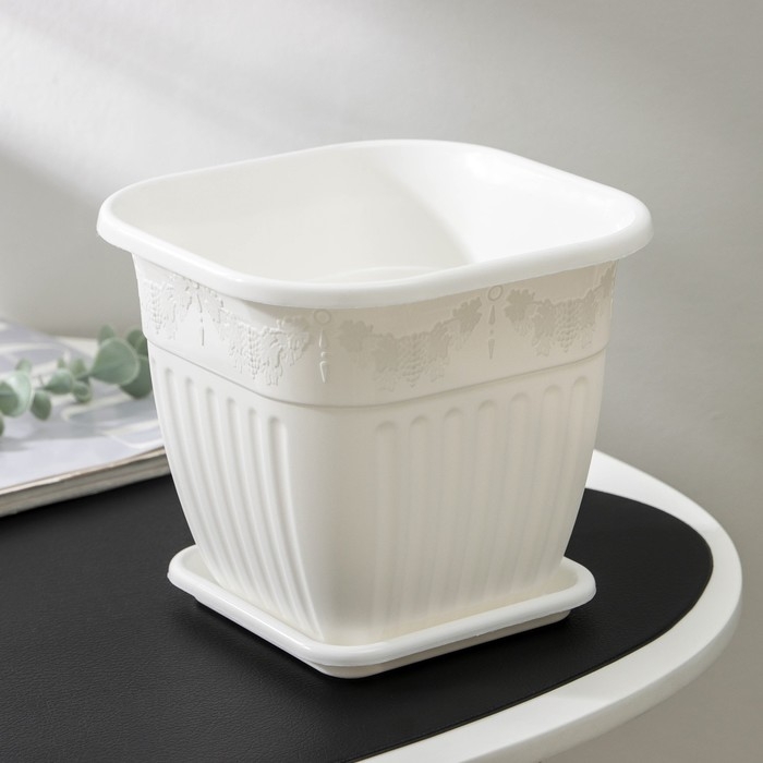 Горшок для цветов с поддоном «Лозанна», 3 л, пластиклвый, цвет белый