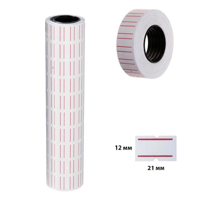 Ценники самоклеящиеся для этикет-пистолета, 12 х 21 мм, в 1 рулончике 300 штук, набор из 10 рулончиков, белые с красными полосками