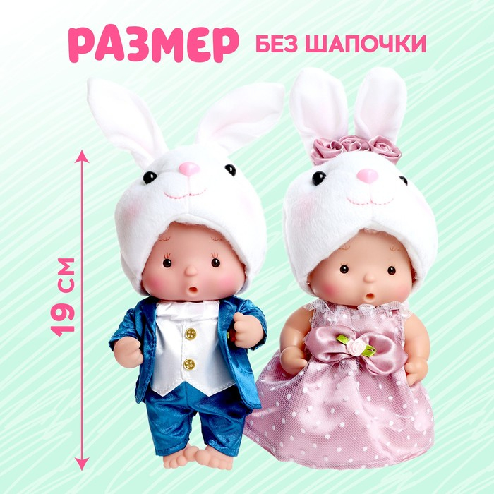 Пупсы коллекционные «Крошики: Сладкая парочка», в костюмах зайчиков, 19 см