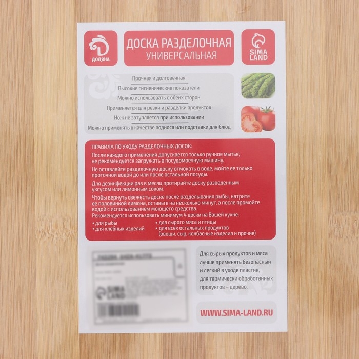 Доска разделочная Доляна, 30×20×2 см, берёза