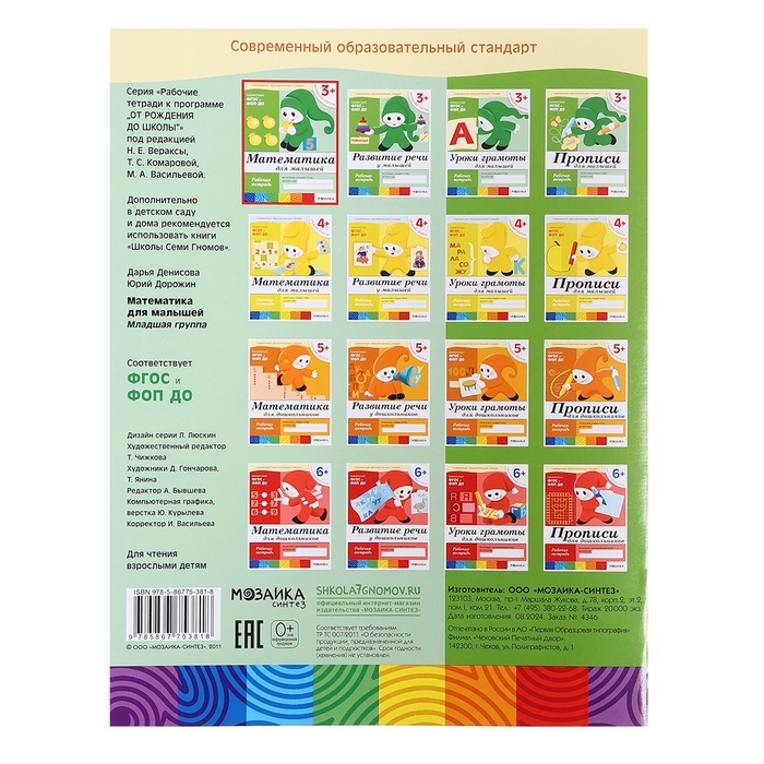 Рабочая тетрадь «Математика для малышей» (младшая группа), Денисова Д.