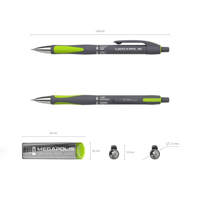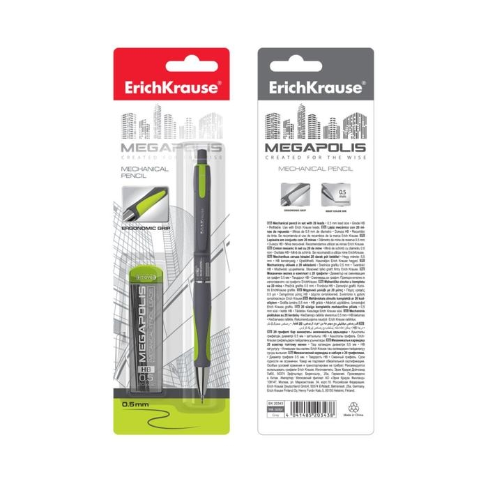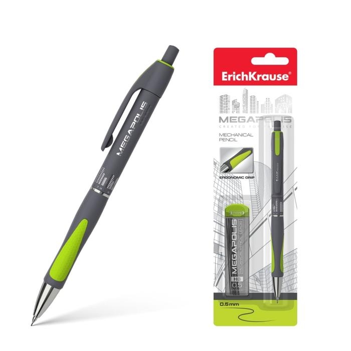 Набор карандаш механический Erich Krause "MEGAPOLIS CONCEPT", НВ, грифель d=0.5 мм, 20 грифелей, в блистере, резиновый упор, микс