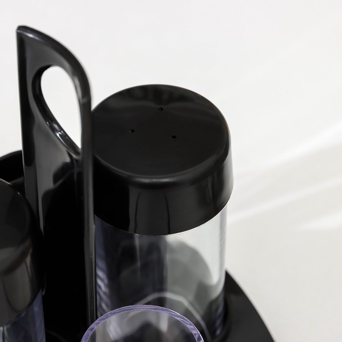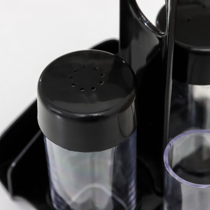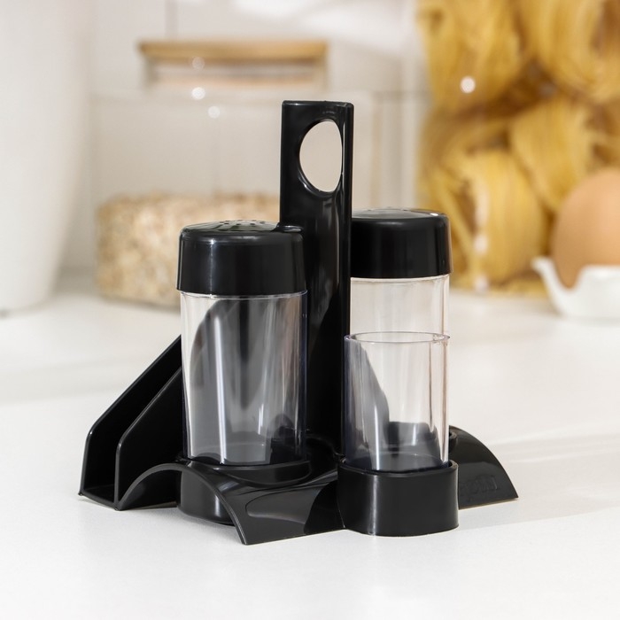 Набор для специй пластиковый «Рондо. Презент», 3 шт, на подставке с салфетницей, цвет чёрный
