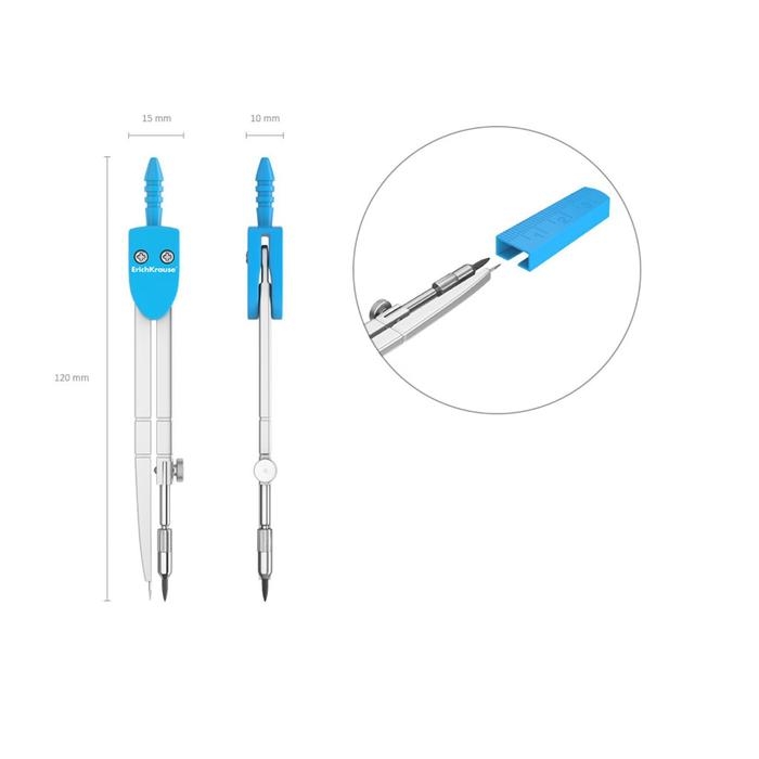 Циркуль металлический, Erich Krause S-Cool, 120 мм, максимальный радиус 18 см, пластиковый чехол с линейкой, европодвес, МИКС