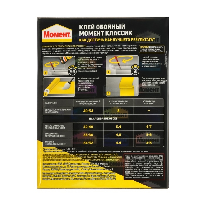 Обойный клей от проверенного производителя — залог хорошего ремонта. «Момент» предназначен для работы со всеми видами бумажных обоев.