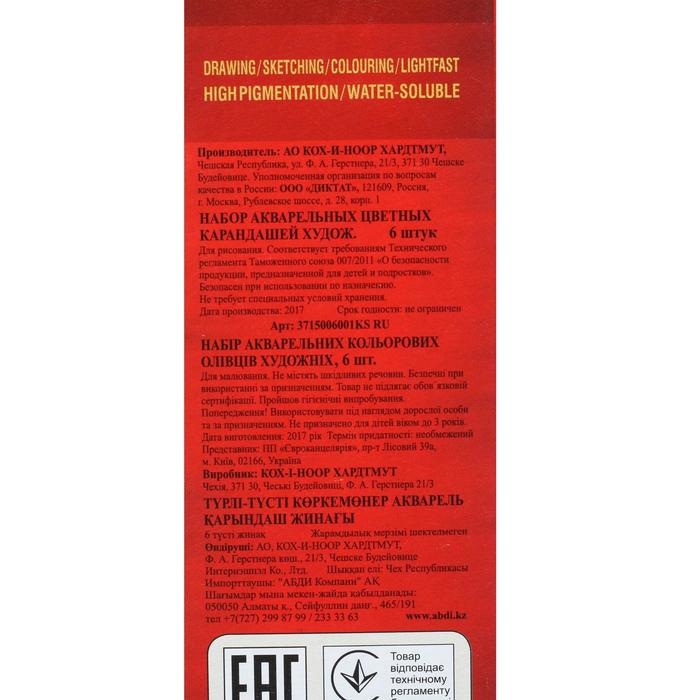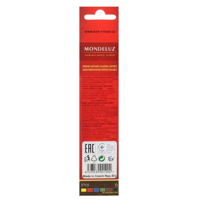 Карандаши акварельные набор 6 цветов Koh-I-Noor Mondeluz 3715