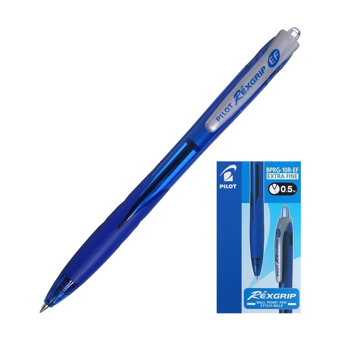 Ручка шариковая автоматическая Pilot "Rexgrip", узел 0.5 мм, чернила синие на масляной основе, резиновый упор