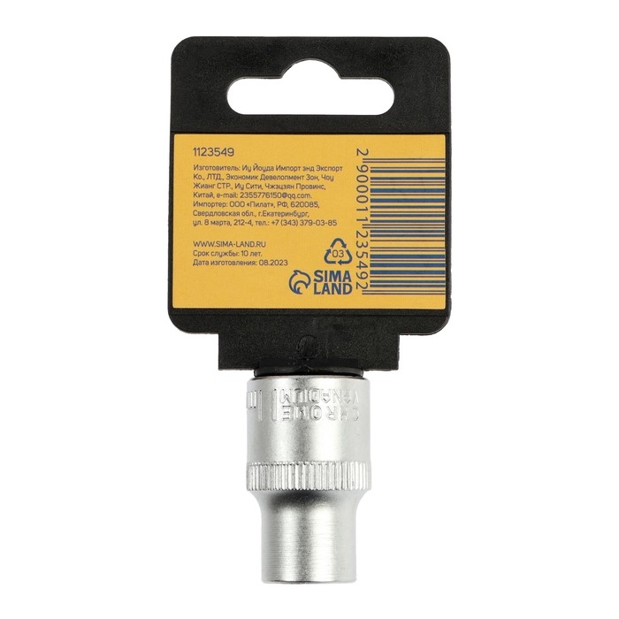 Головка торцевая шестигранная удлиненная ТУНДРА, под квадрат 1/2", 10 мм, CrV