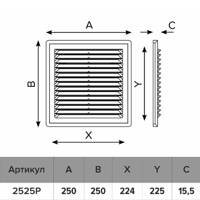 Решетка вентиляционная ERA 2525 Р, 250x250 мм, с сеткой, разъемная