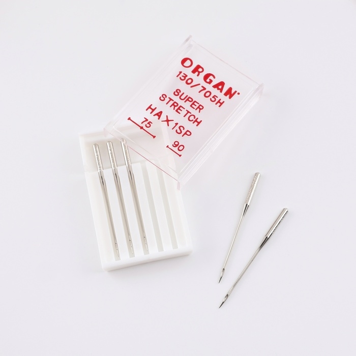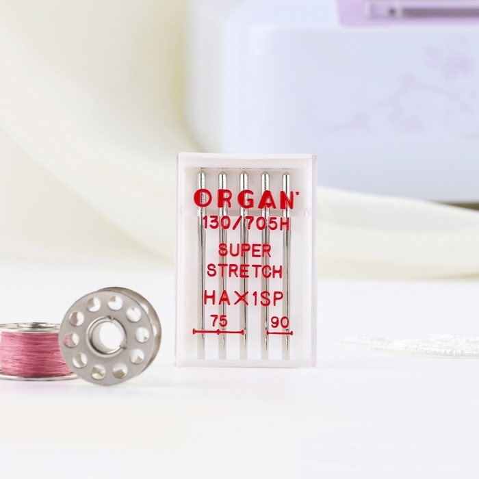 Качество швейной иглы важно так же, как механизм машинки. Иглы суперстрейч предназначены для работы с высокоэластичными материалами: трикотажем, спандексом и другими. Также они подходят для вышивки на машине. Лёгкое закругление острия отодвигает нити полотна и не спускает петли.