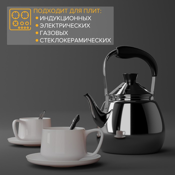 Чайник со свистком из нержавеющей стали, 5 л, цвет хромированный