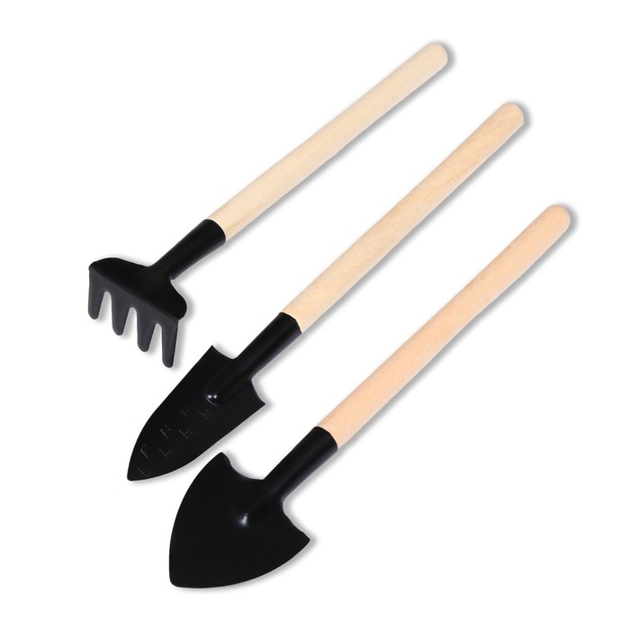 Набор садового инструмента, 3 предмета: грабли, совок, лопатка, длина 20 см, деревянная ручка, МИКС, Greengo