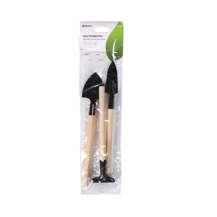 Набор садового инструмента, 3 предмета: грабли, 2 лопатки, длина 24 см, деревянные ручки, Greengo