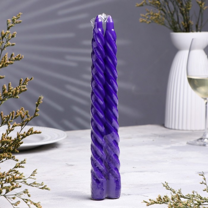 Набор свечей витых, 2,2х 25 см, лакированная 2 штуки, фиолетовый