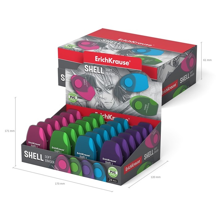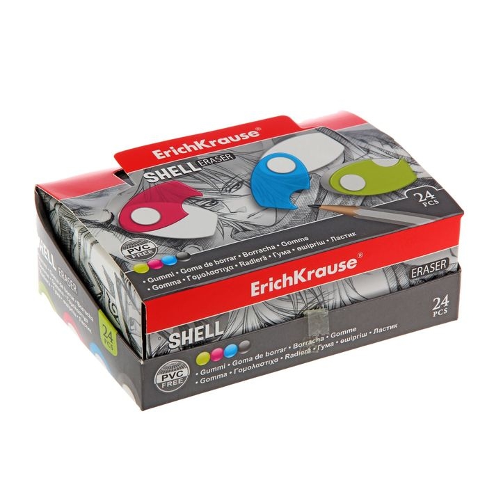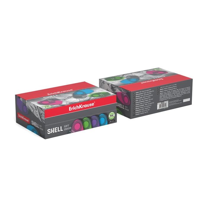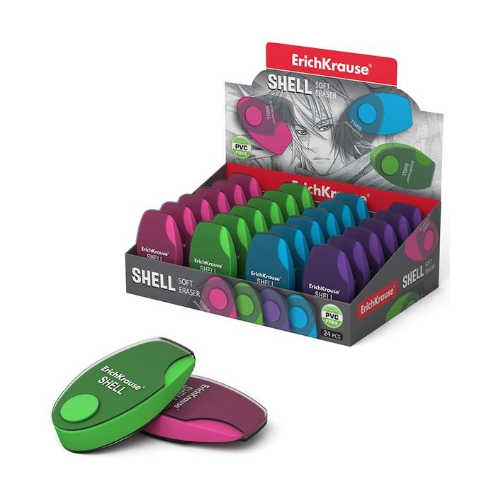 Ластик в пластиковом футляре ErichKrause Shell, мягкий, гипоаллергенный, МИКС