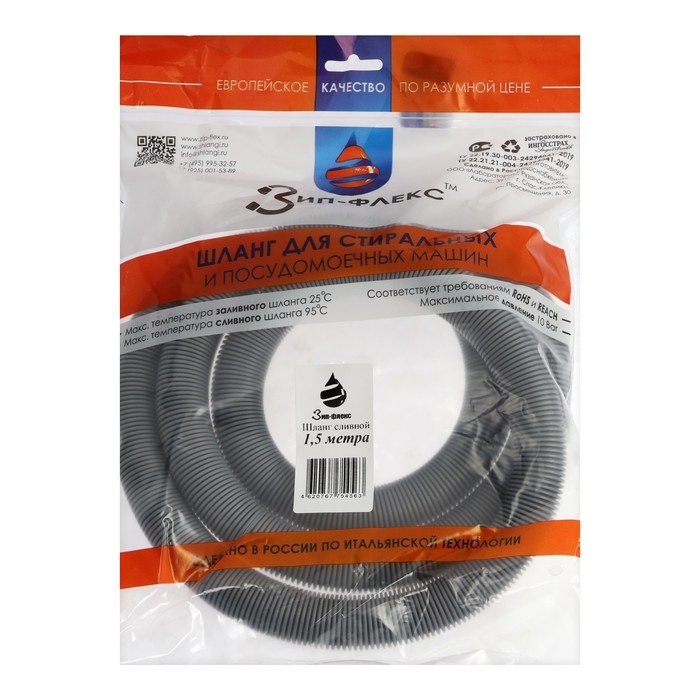 Сливной шланг для стиральный машины "Зип-флекс", индивидуальная упаковка, 1.5 м