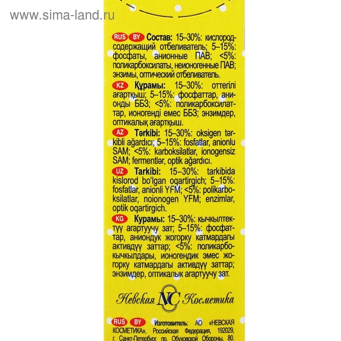 - восстанавливает белизну ткани;