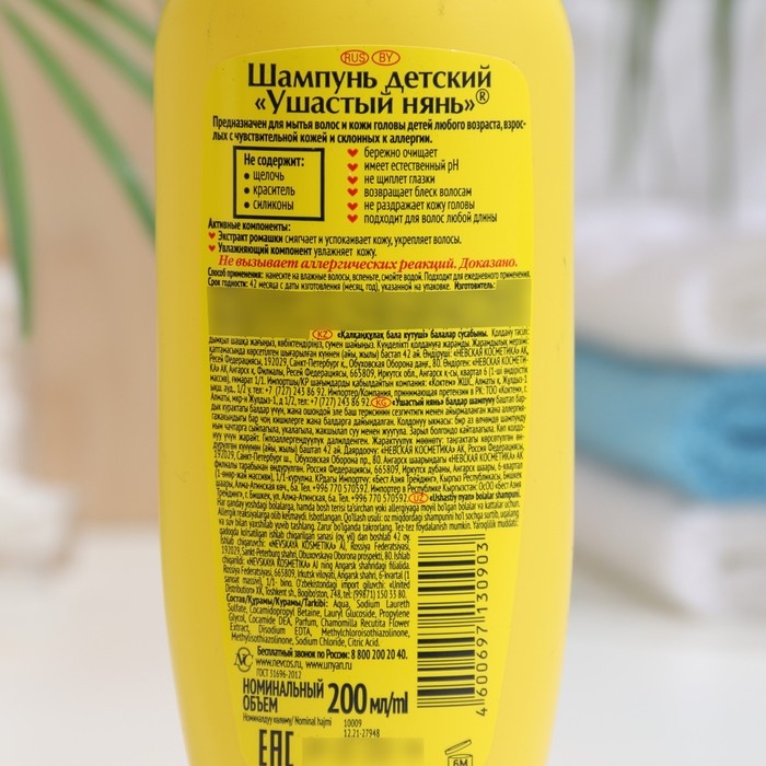 Детский шампунь "Ушастый нянь", с ромашкой, 200 мл