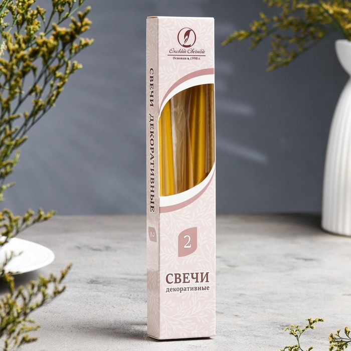 Набор свечей витых, 2,2х 25 см, лакированная 2 штуки, жёлтый