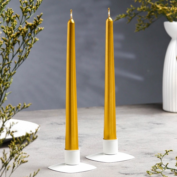Набор свечей античных, 2,3х 24,5 см, 5 ч, 55 г, 2 штуки, золотой