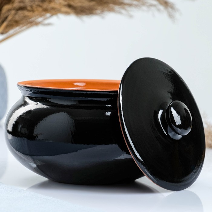Набор посуды "Вятская керамика" 2,5л + 4х0,5л + ложка, черный