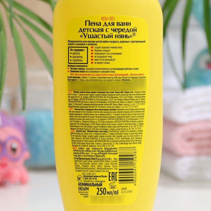 Детская пена для ванн Ушастый нянь, с чередой, 250 мл