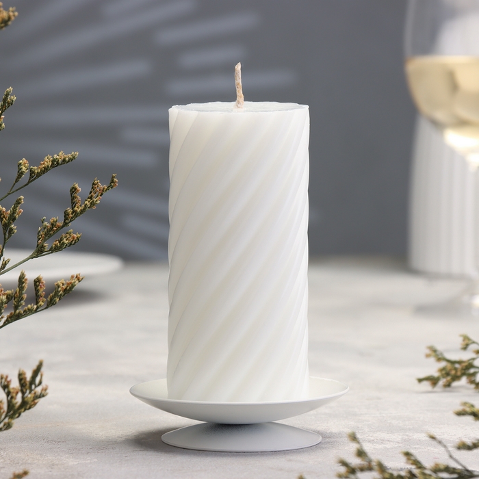 Подсвечник "Лотос" металл на 1 свечу, 7,5х2 см, белый