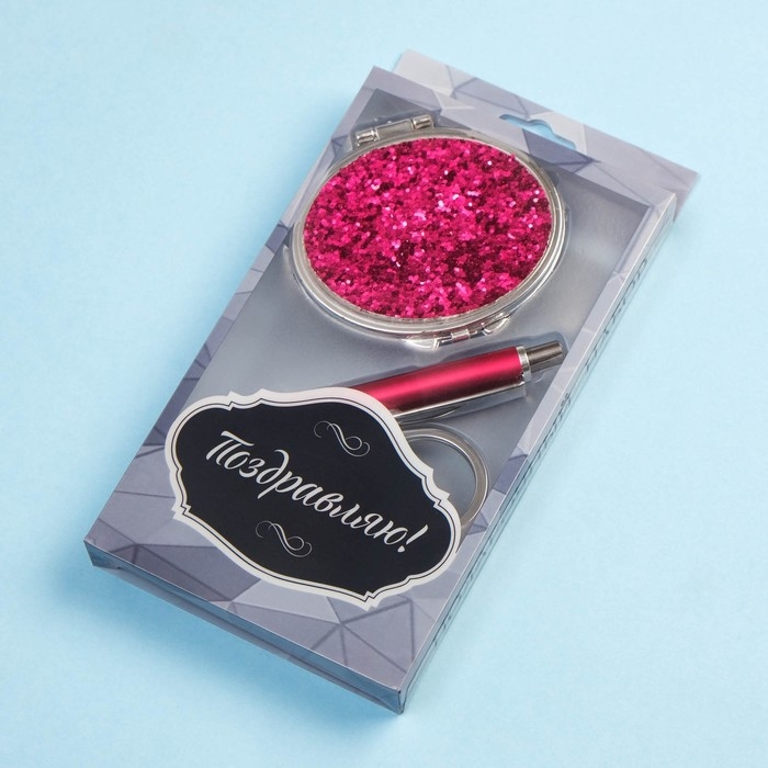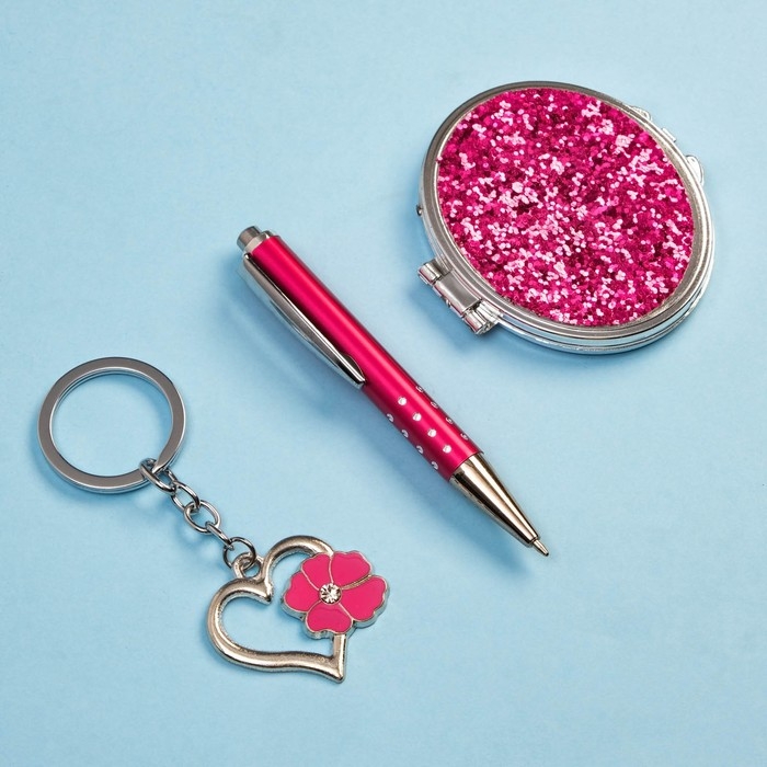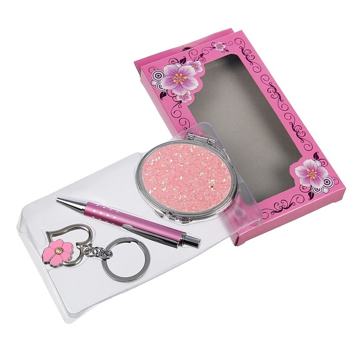 Набор подарочный 3в1 (ручка, зеркало, брелок), микс