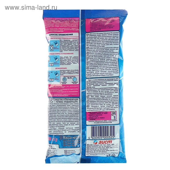 Кислородосодержащий отбеливатель «БОС плюс Maximum» подходит для стирки всех видов тканей.