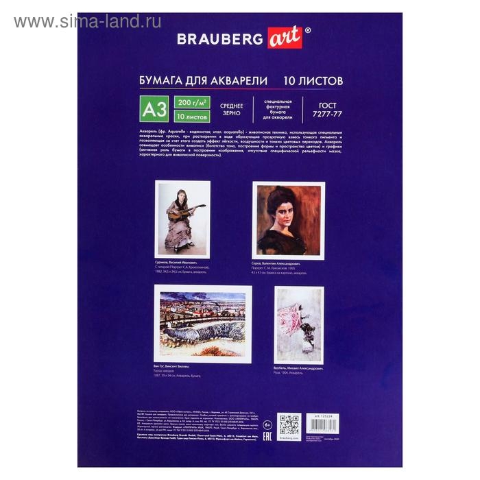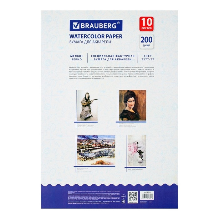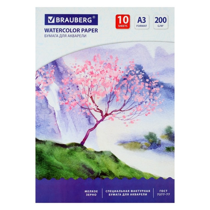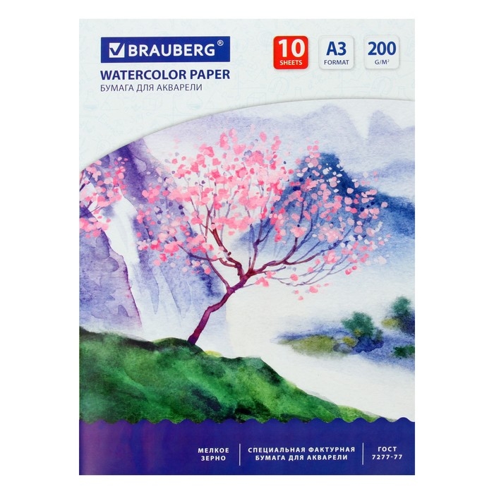 Папка для акварели А3, 297 х 420 мм, 10 листов, блок 200 г/м2 бумага по ГОСТ 7277-77