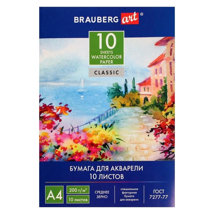Папка для акварели А4, 210 х 297 мм, 10 листов, блок 200 г/м2, бумага по ГОСТ 7277-77