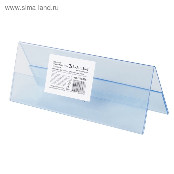 Настольная информационная табличка BRAUBERG идеально подойдет для размещения меню, рекламных материалов или фамилий с должностями во время проведения переговоров или конференций. Изготовлена из прозрачного акрилового стекла. Горизонтальная двусторонняя табличка в форме "домика" предназначена для настольного размещения. Максимальная высота вставляемого листа - 80 мм, максимальная ширина вставляемого листа - 210 мм. В защитной плёнке.