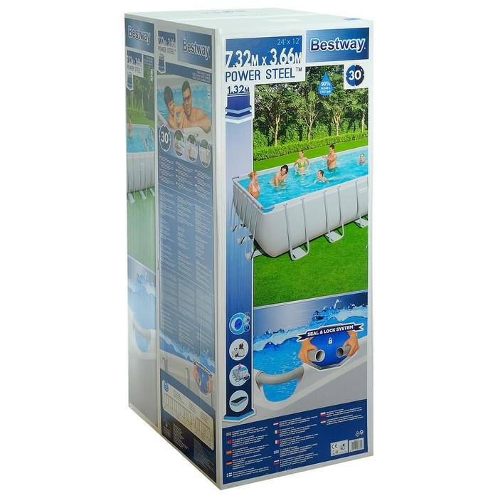 Бассейн каркасный Power Steel, 732 х 366 х 132 см, песчаный фильтр-насос, лестница, тент, 56475 Bestway