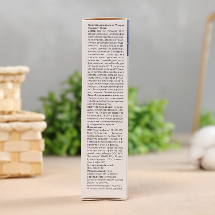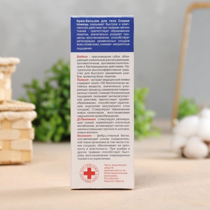 Крем-бальзам для тела от синяков и ушибов ускоряет регенеративные процессы, препятствует развитию застойных явлений и воспаления, способствует восстановлению поврежденных сосудов и рассасыванию гематом.