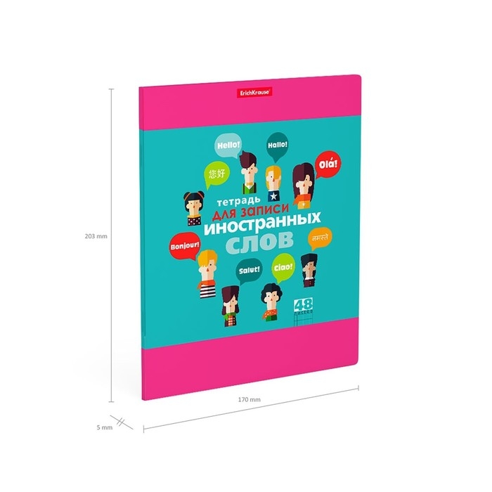 Тетрадь для записи иностранных слов, 48 листов в клетку, ErichKrause Hello, три столбца: слово, транскрипция, перевод, МИКС