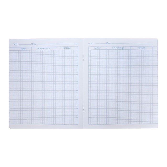 - Блок 48 листов в линейку имеет три столбца - слово, транскрипция, перевод.