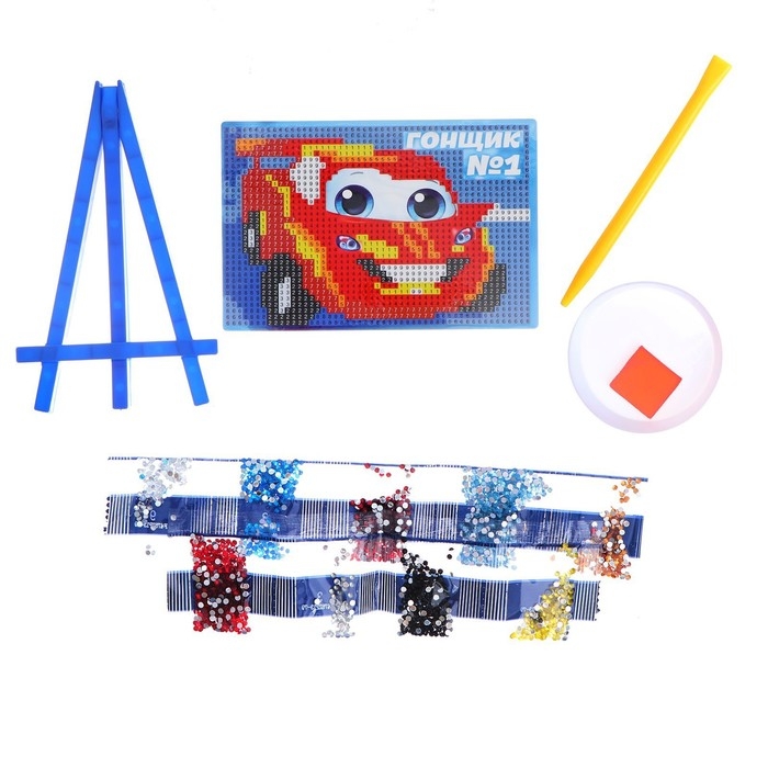 Алмазная мозаика с частичным заполнением на подставке для детей «Гонщик», 10 х 15 см