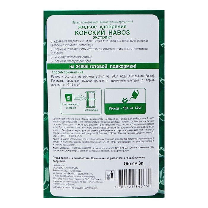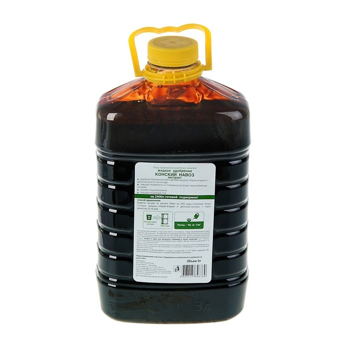 Конский навоз жидкое органическое удобрение заменяет 2 тонны навоза. Удобрение предназначено для подкормки овощных, плодово-ягодных и цветочных культур и их рассады.