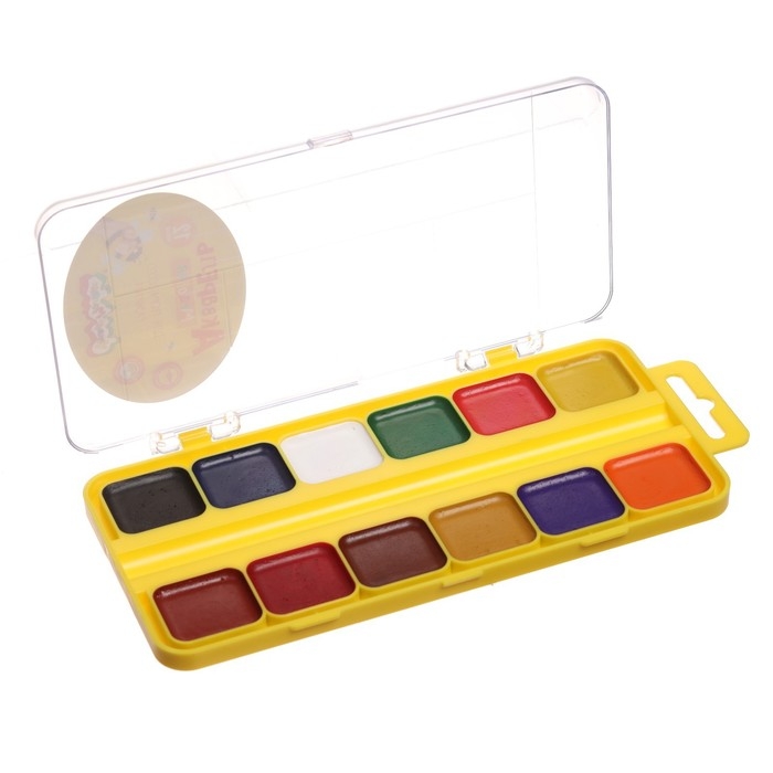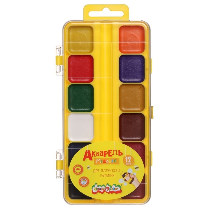 Акварель 12 цветов "Каляка-Маляка", медовая, без кисти, пластик
