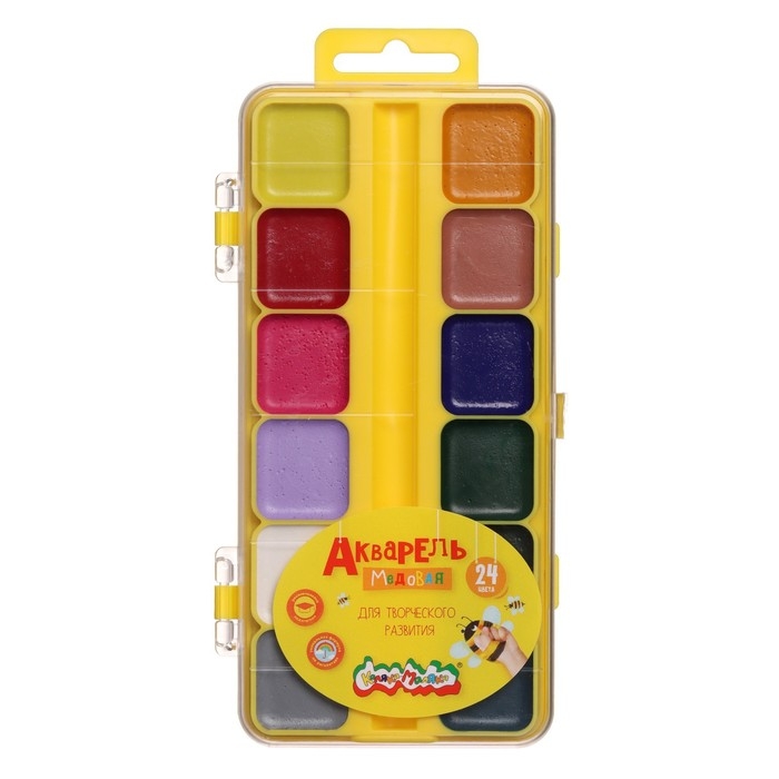 Акварель 24 цвета "Каляка-Маляка", медовая, без кисти, пластик