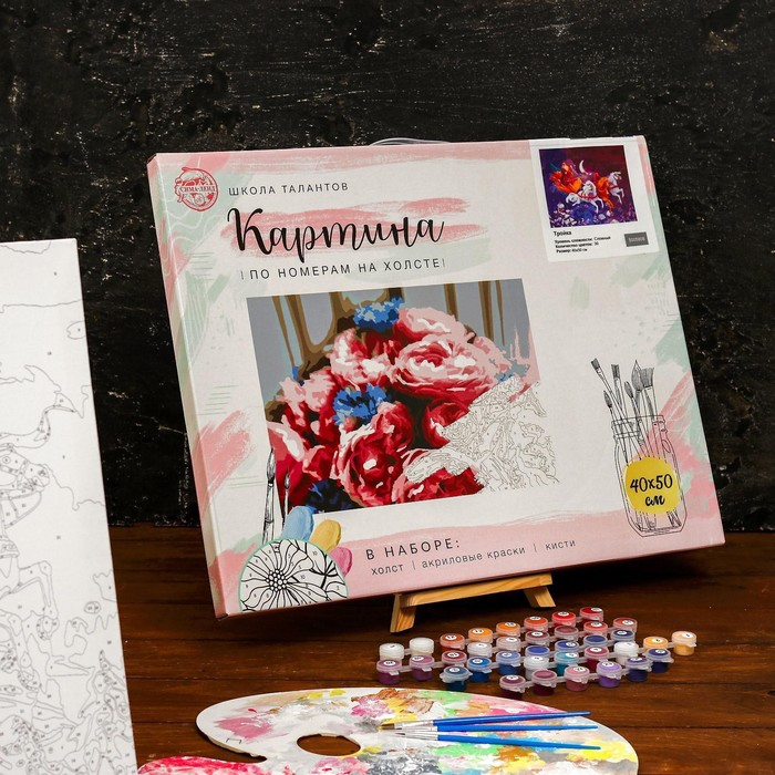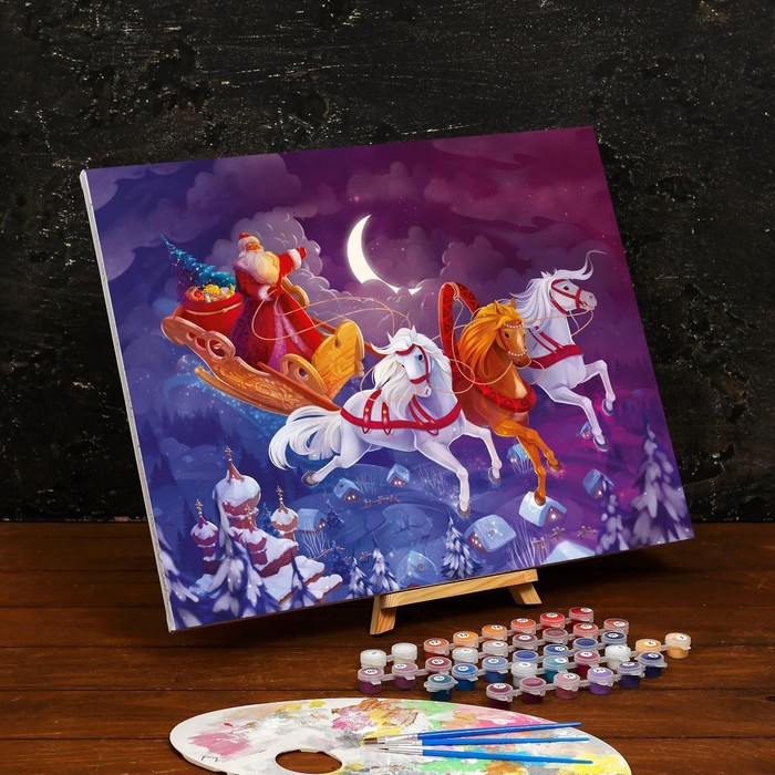 Картина по номерам на новый год на холсте с подрамником «Тройка», 40 × 50 см понравится и детям, и взрослым.