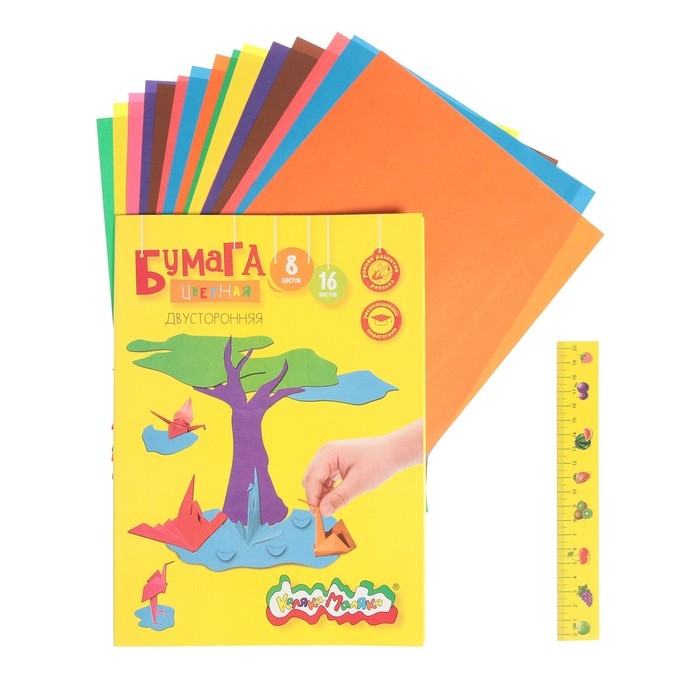 Бумага цветная двусторонняя А4, 16 листов, 8 цветов "Каляка-Маляка"