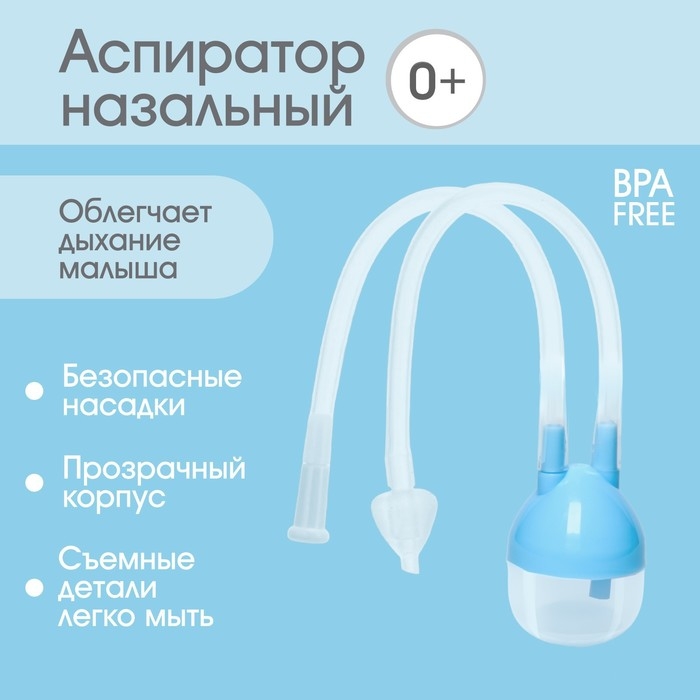 Детский назальный аспиратор, с отводной трубкой, цвет голубой