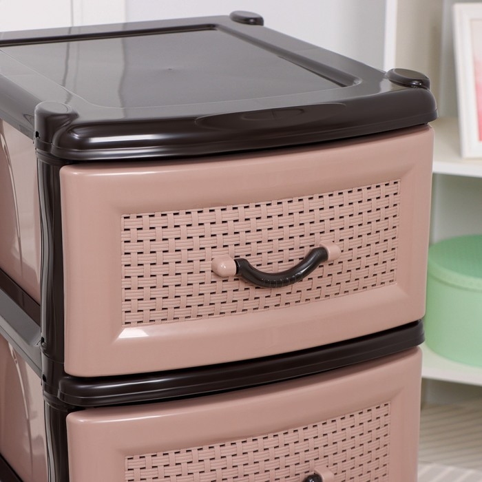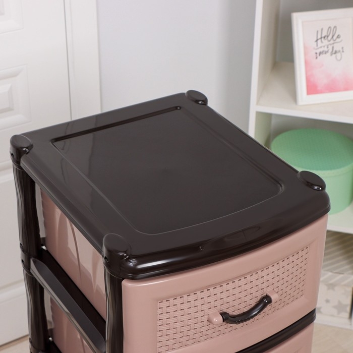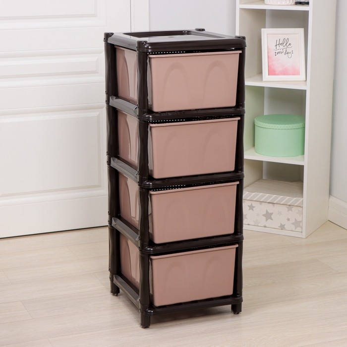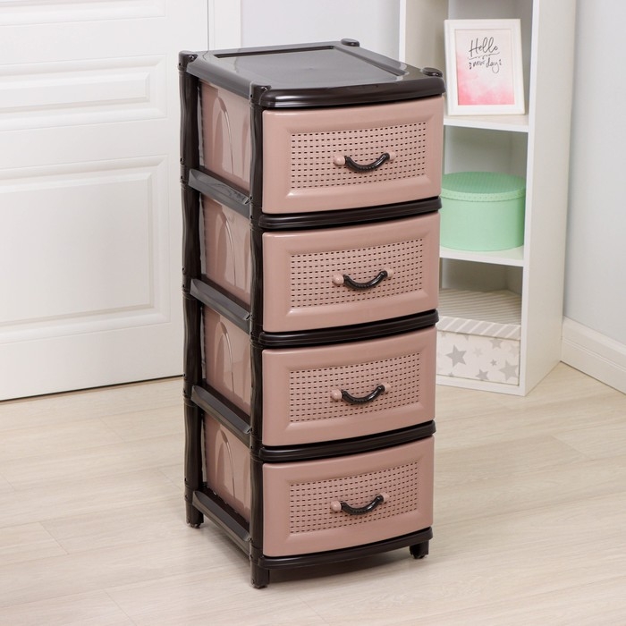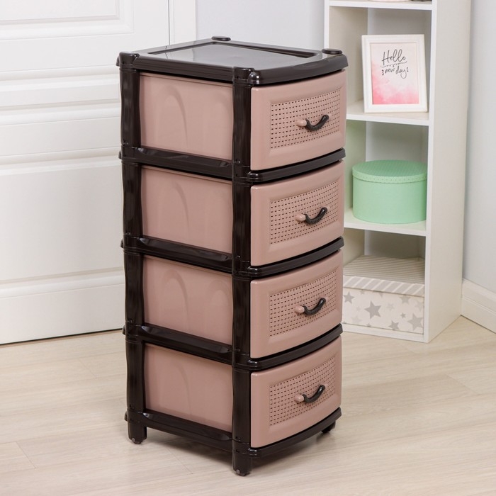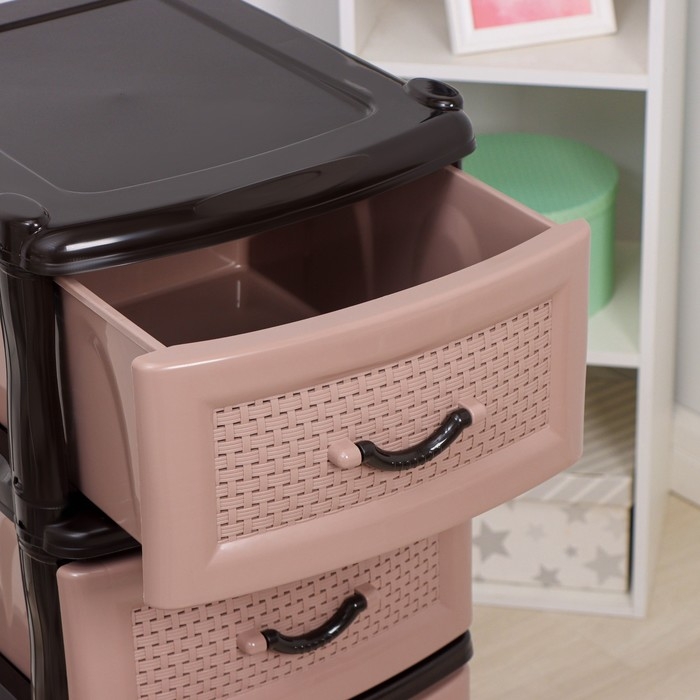 С помощью практичного пластикового комода вы правильно организуете хранение вещей. Изделие имеет жёсткую конструкцию за счёт цельных боковых стенок. Отсутствие острых углов делает его безопасным для ребёнка. Комод изготовлен из экологически чистого материала, не содержит вредных веществ.