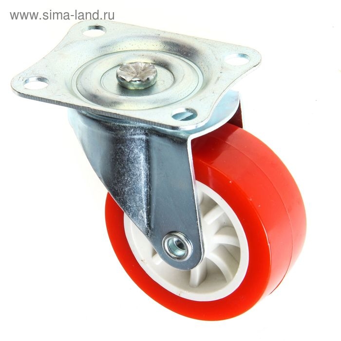 Колесо мебельное, d=75 мм, на площадке, с фиксатором, красное