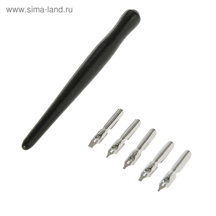 Набор перьев плакатных плоских 5 штук: №: 1(3 мм), 2(2.3 мм), 3(1.5мм), 4(1 мм), 5(0.65 мм) + держатель, ЗХК "Сонет" DK11605