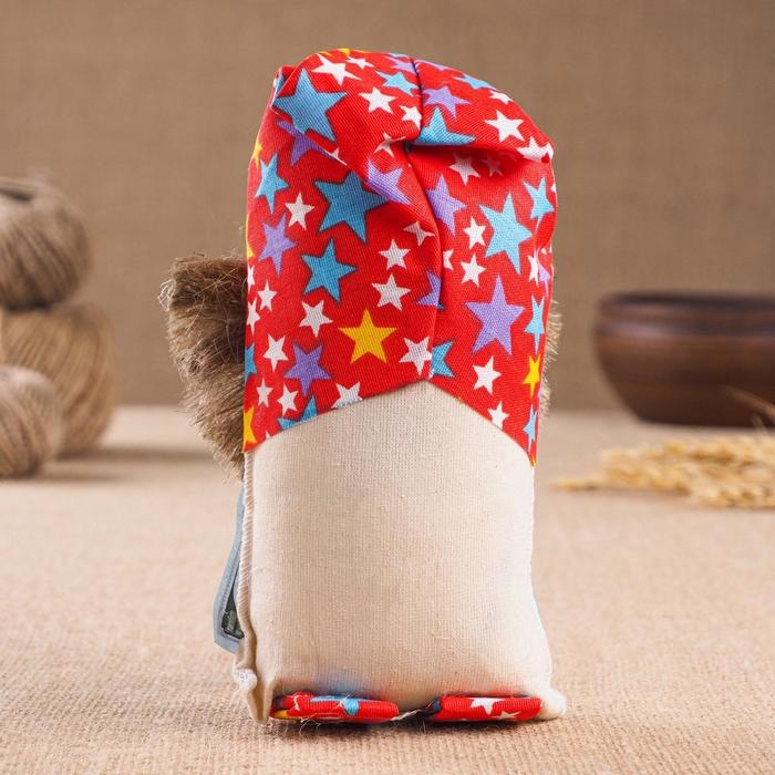 Оберег-домовой "Славуся в льняном колпаке, с ложкой и подковой", микс