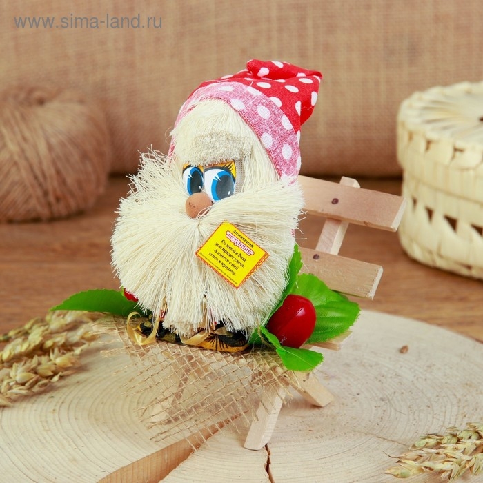Оберег-домовой "Кузя в кепке, с метлой и подковой", 23х25х13 см МИКС